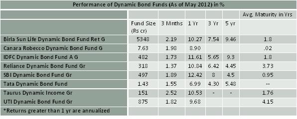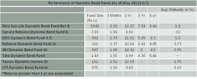 Most dynamic funds have been able to show a strong performance in recent times. The primary reason is the active management and quickly reposition of the maturity profile as per the interest rate environment. SBI Dynamic Bond Fund, which had increased its average maturity profile to an excess of eight years in November 2011, cut it to less than a year in March 2012. Reliance Dynamic Bond Fund, which had increased its average maturity to 11.5 years in November 2011, cut it to 3.73 years in March 2012. This strategy has paid off well for these two funds which have grabbed the no 1 spot in last quartile. Most other dynamic bond funds have also cut their average maturity, especially in the month of March.