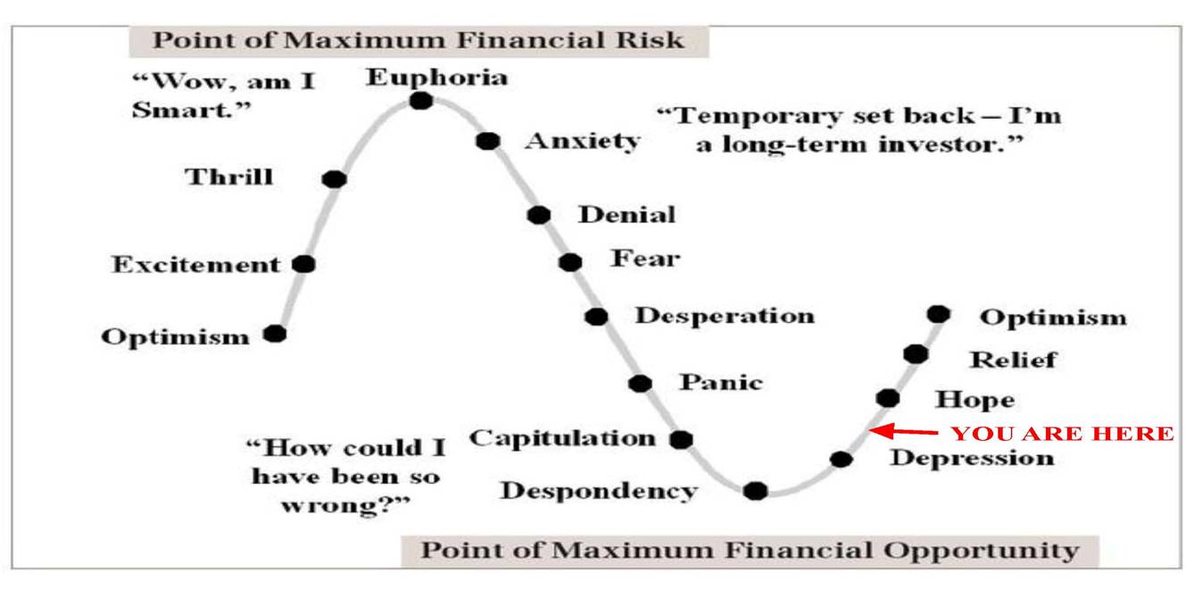 W.R.T. investment decisions,Human Behavior is a cycle which repeats every now and then .We start with a great optimism, go to the peak of euphoria thrilled by the phenomenal rise in stock prices and come to the stage where panic starts.Again when the tide turns with a second rally in market we reach to the same euphoria.The biggest mistake in our personal behavior is that we enter the markets when it has already gained excitement which do not last long and a sudden change in the run brings the depression.We experience this behavior in every cycle till we feel the markets are not for us.Thus as an investor we always lounge for the short term gains rather then being invested in the long term.