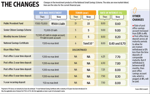 Given below are the changes in terms and interest rates for these savings schemes-